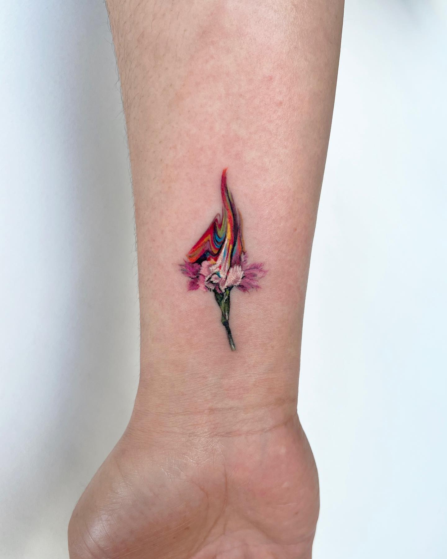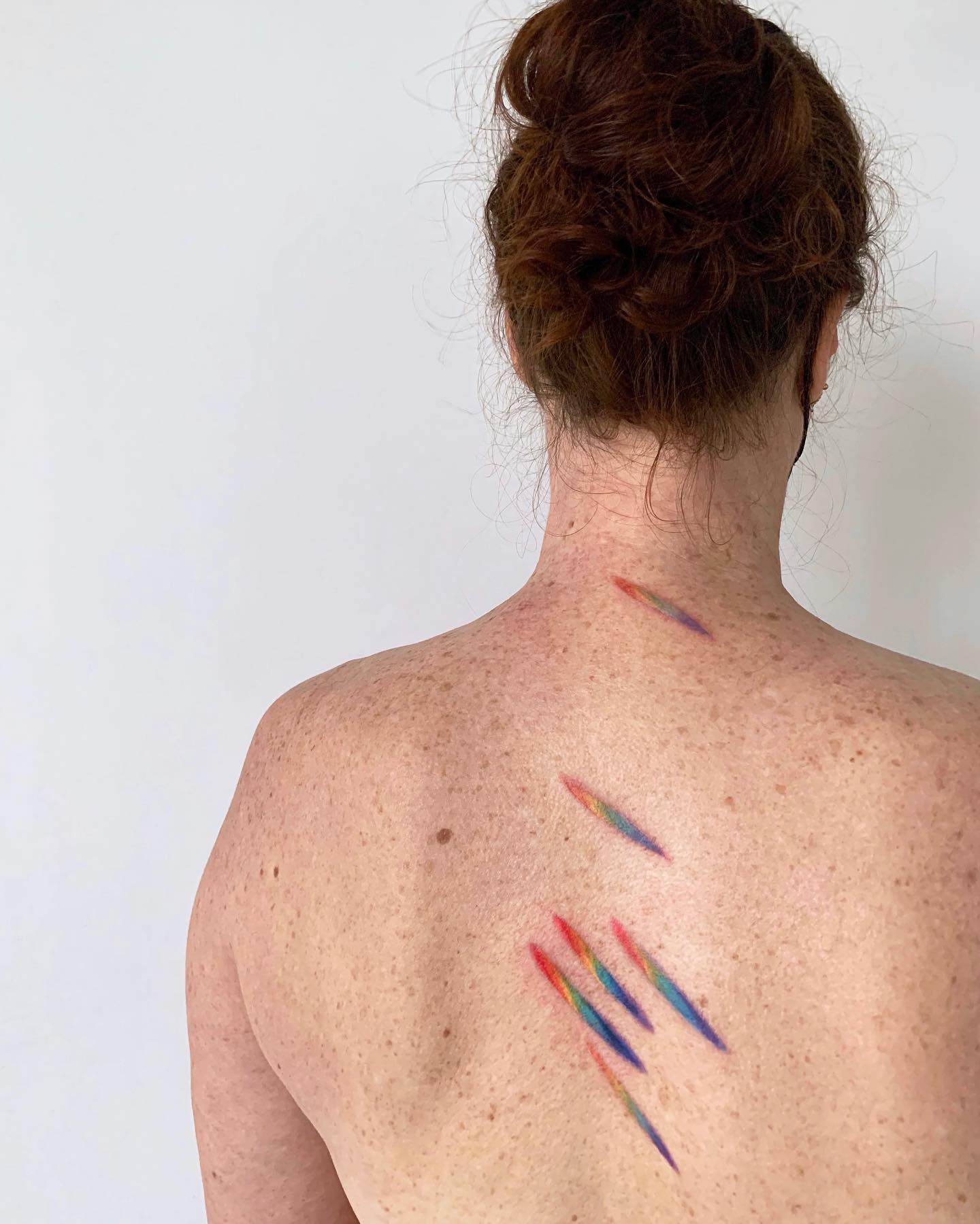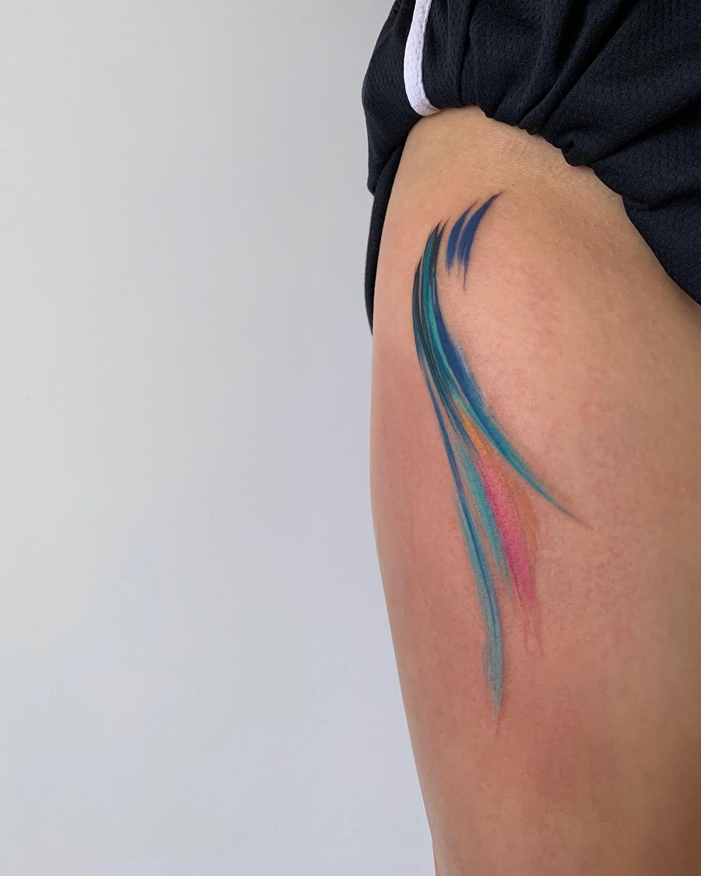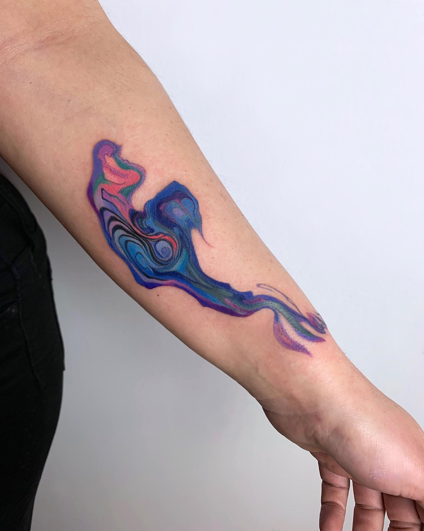 Amanda est surtout connue pour avoir popularisé le style “aquarelle” dans le tatouage. Ses œuvres se distinguent par des motifs abstraits, des coups de pinceau fluides et des éclaboussures de couleur, rappelant les techniques de la peinture moderne. Elle a ainsi repoussé les limites du tatouage traditionnel en introduisant des éléments artistiques innovants.